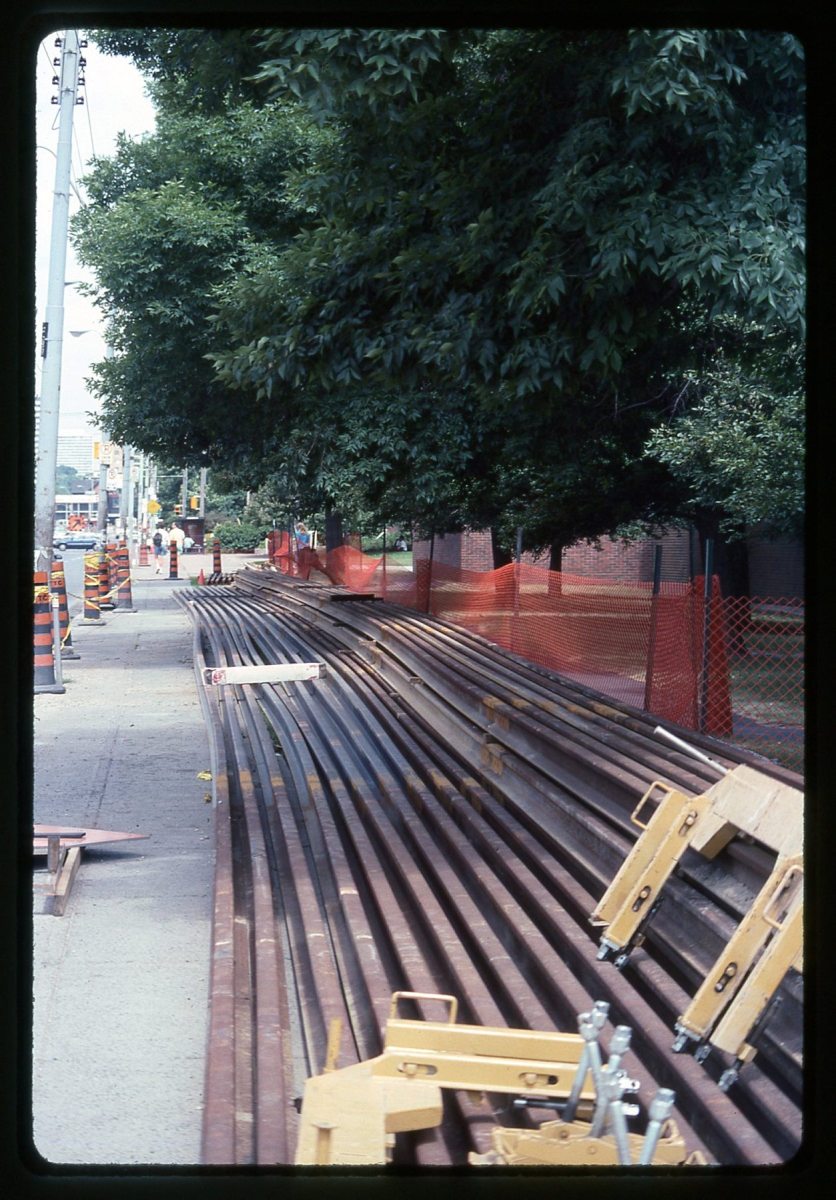 Published July 24, 2017 at 1253 × 1799 in The Spadina Streetcar Turns 20 (Part I) ← Previous Next → Rail strings awaiting installation