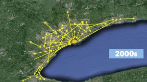 Four maps show how travel patterns in the GTHA have changed over the decades, and where Metrolinx expects they will go in the future. [Click to view as a slideshow.]