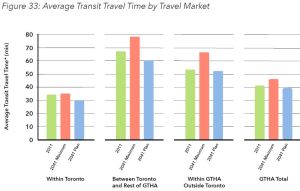 Just as with the original Big Move, we are running very hard just to stay in the same place. This is a dangerous situation on two counts. First, the political constituency for transit depends on its being valued by a wide cross-section of GTHA citizens. People who don’t use transit regard spending on new construction or operations as something for “them”. They wonder when there will be more roads for “us”. Second, if much of the travel is still not on the transit network, this means that transit has failed to attract its audience. This could be either because one can’t get from “here” to “there”, or because doing so by transit is simply not an acceptable way to make the journey.