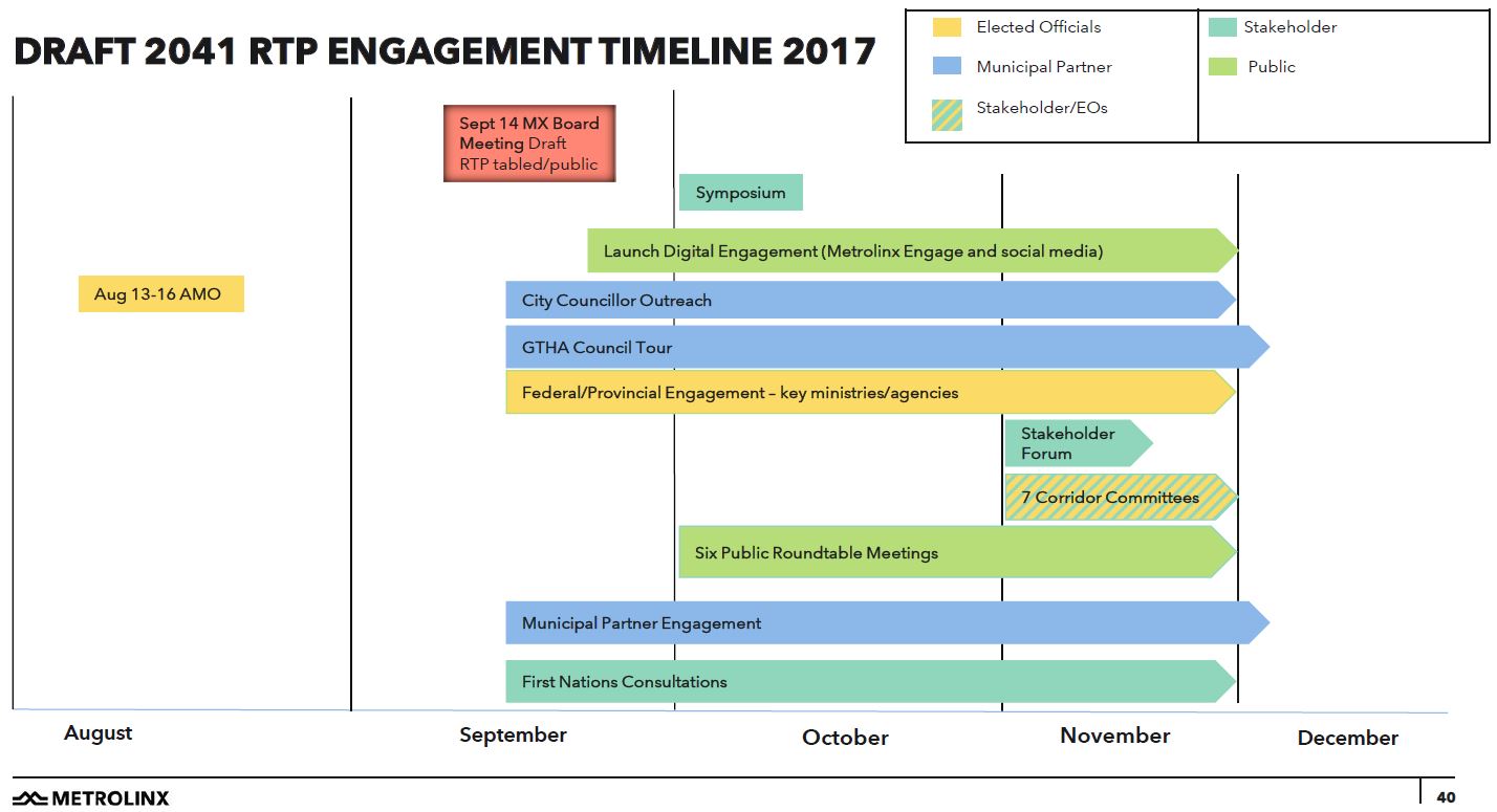 The Metrolinx Board considered its Draft Regional Transportation Plan for the GTHA on September 14, 2017 and approved its release for comment, subject to some last-minute editorial changes. This is an update of the original “Big Move” plan, and it takes the view of transportation needs and networks out to 2041.