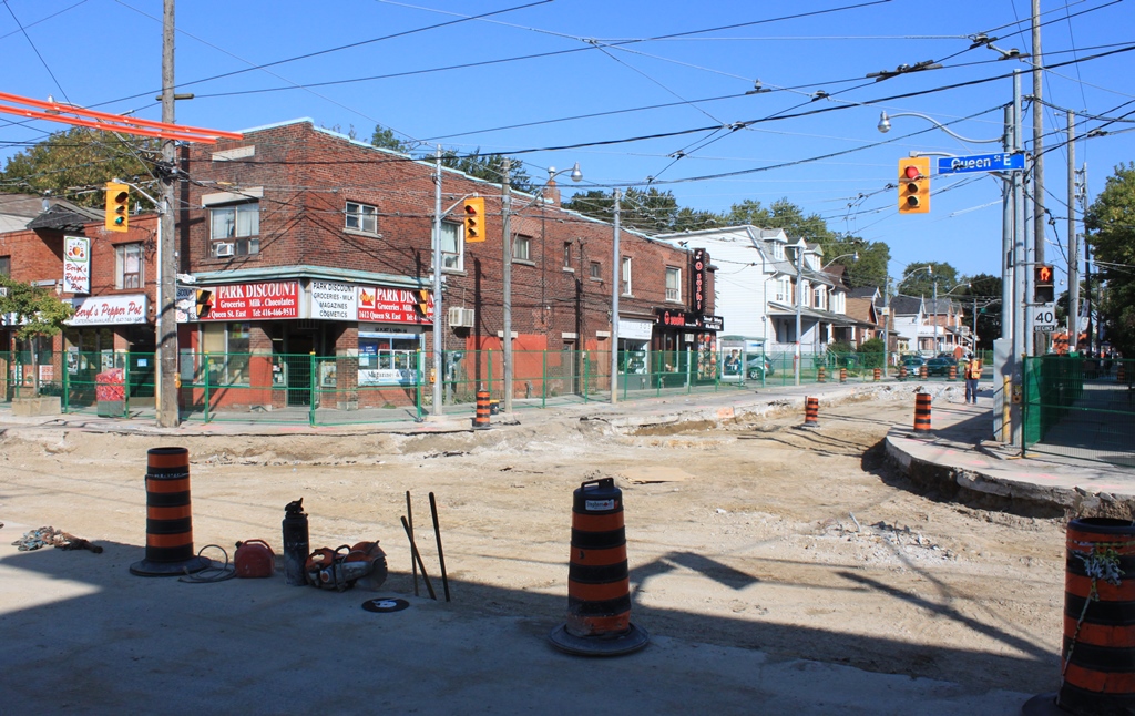 Published September 17, 2017 at 1024 × 646 in Queen/Coxwell Reconstruction ← Previous Next → 2017.09.11 Looking N on Coxwell