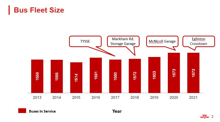 McNicoll Garage opens in 2020 and this will allow the fleet to grow. Much of the new space will be used to accommodate buses from existing overcrowded garages.
