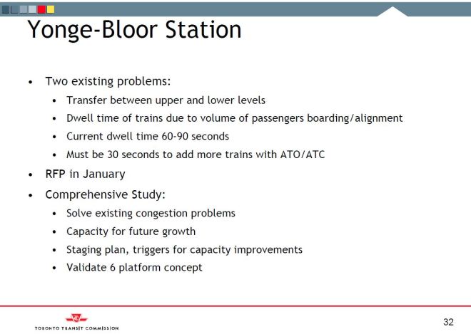 - The capacity of key stations, notably Bloor-Yonge, would have to be increased to handle the larger passenger volume a more frequent service would bring to the platforms and circulation space.