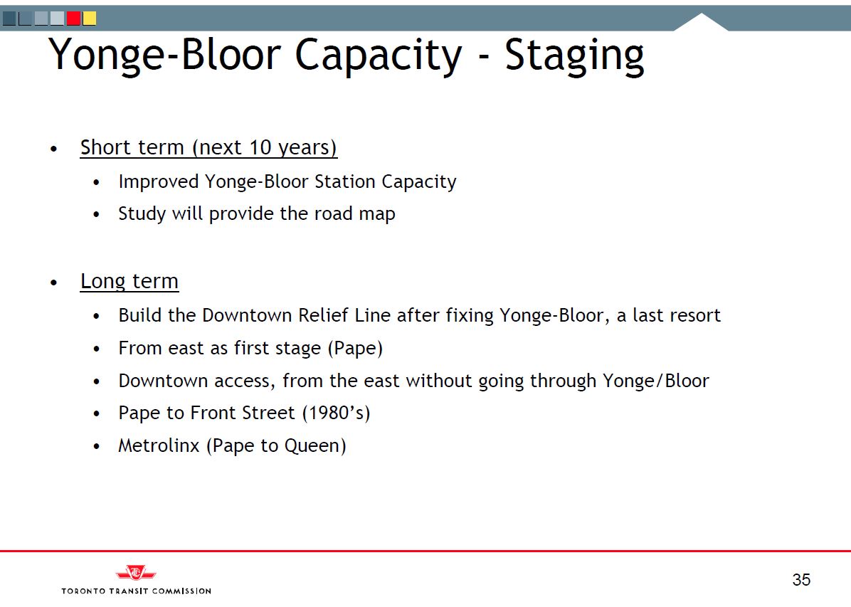 This is how we come to be in this mess with inadequate subway capacity that faces Toronto today – years of saying “relief is nice, but first let us try to fit more people on the existing line”.