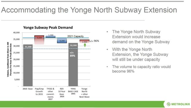 - Although the TYSSE (Vaughan extension) will divert some riding away from the Yonge line, other planned changes such as the Eglinton Crosstown will add to demand with a net effect of another 1,300 riders in the peak hour.