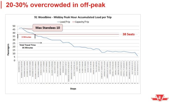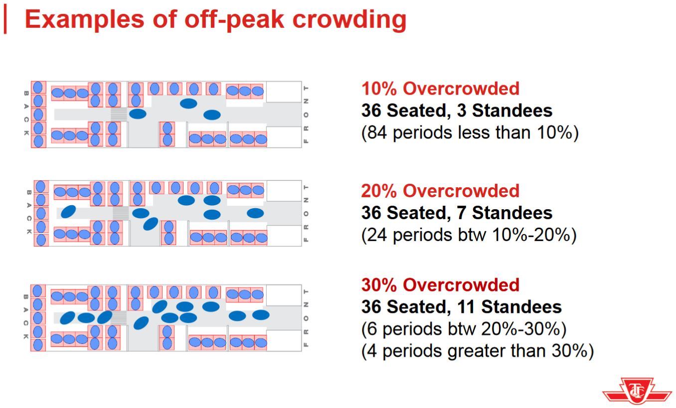 This produced situations over the years which continue right to the present day where routes can be overcrowded by the standards, but there is no public reporting of the overall shortfall. The TTC Board recently directed that this information be included quarterly in the CEO’s Report, and it is amusing that for a “customer focused” organization, the absence of such basic reporting has gone on for so long.