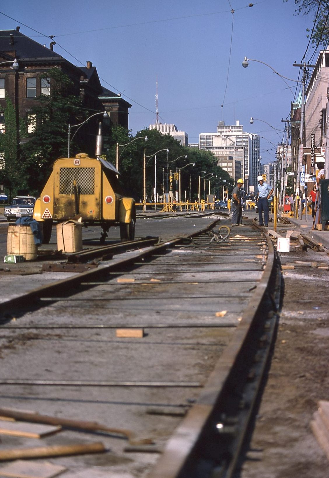 6. Wow! What memories these shots bring back. I remember Bob McMann running into the Upper Canada Railway Society meeting on the Friday evening to tell us that College Street had collapsed and the tracks had gone with it. I also remember the Victory Theatre from around that time because the manager, who was a Jolson fan like me, sneaked me in to see a third-rate American hambone who did an act between the strippers that was billed as Jolson Sings Again – in blackface, yet. I was 15. The deal was that I got to see the Jolson imitator, but not the girls. I had to wait several years for the latter to happen thanks to cuddly ol’ Elwy Yost at a famous dive in Hollywood called The Pussycat Club. There was former Pacific Electric trackage in front of it, which was still being used by the Southern Pacific to, among other things, haul covered hoppers of flour to the Wonder Bread bakery out in Beverly Hills. It’s probably best if I don’t go any further. There could be kiddies or Elwy fans reading this.