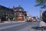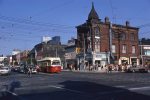 Until the temporary tracks were completed, Carlton cars operated via McCaul, Queen and Spadina. Here are views of those streets as they then were.