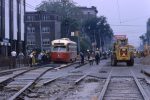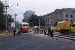 Fixing this was not going to be speedy. Streetcars continued to use the eastbound rails briefly, but the excavation needed to make repairs meant a complete shutdown of service both ways. Rather than leaving the Carlton car on an extended diversion, the TTC built temporary trackage on College Street itself with streetcars running eastbound in the curb lane.