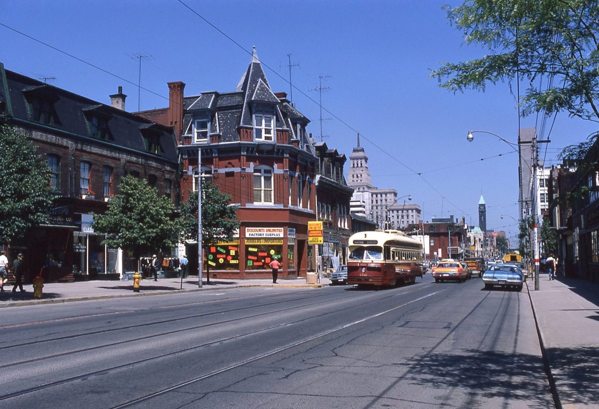Published April 1, 2018 at 1655 × 1131 in Curb Lane Streetcars on College Street (1972) ← Previous Next → WB on Queen W of Beverley St. 1972.06.28