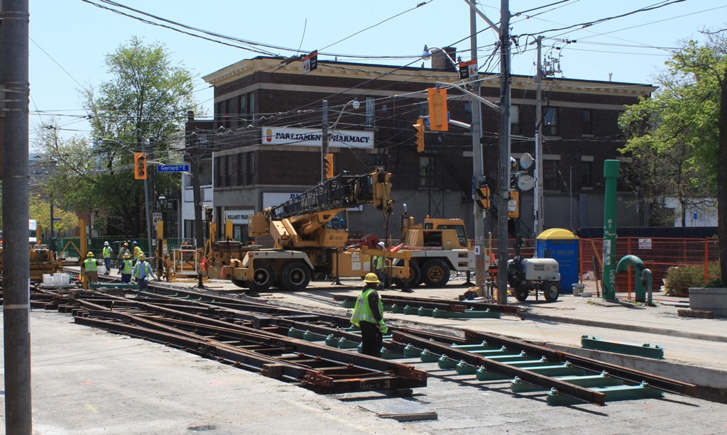 Published May 17, 2018 at 1024 × 613 in Track Replacement at Gerrard & Parliament Streets (Updated May 20, 2018) ← Previous Next → Looking SW across Gerrard