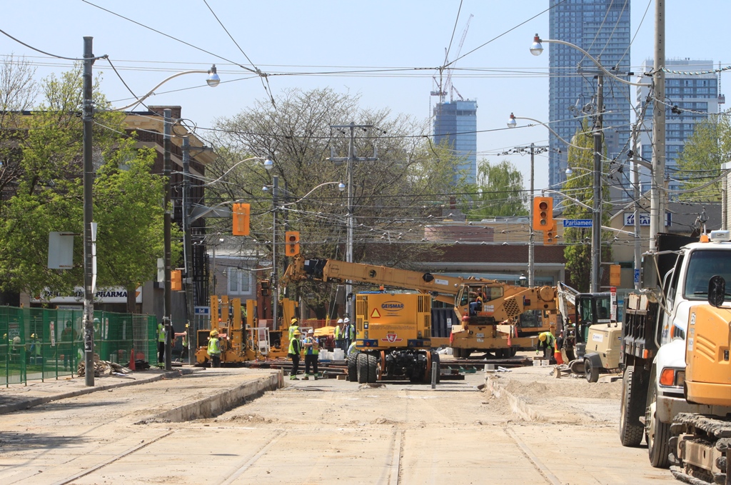 Published May 17, 2018 at 1024 × 679 in Track Replacement at Gerrard & Parliament Streets (Updated May 20, 2018) ← Previous Next → Looking W along Gerrard to Parliament