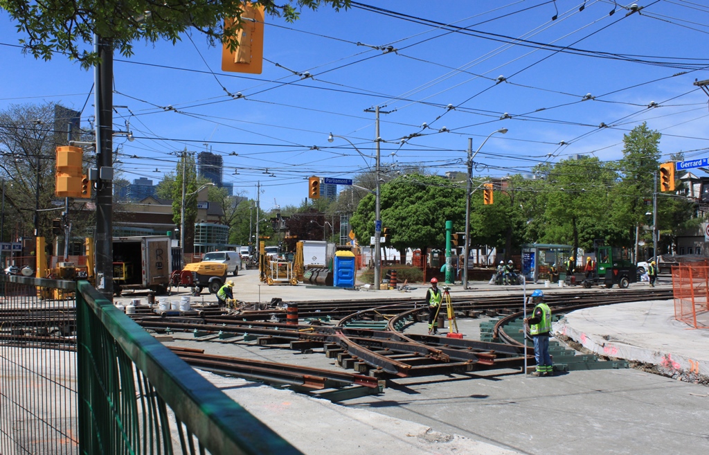 Published May 18, 2018 at 1024 × 657 in Track Replacement at Gerrard & Parliament Streets (Updated May 20, 2018) ← Previous Next → Looking NW across the intersection