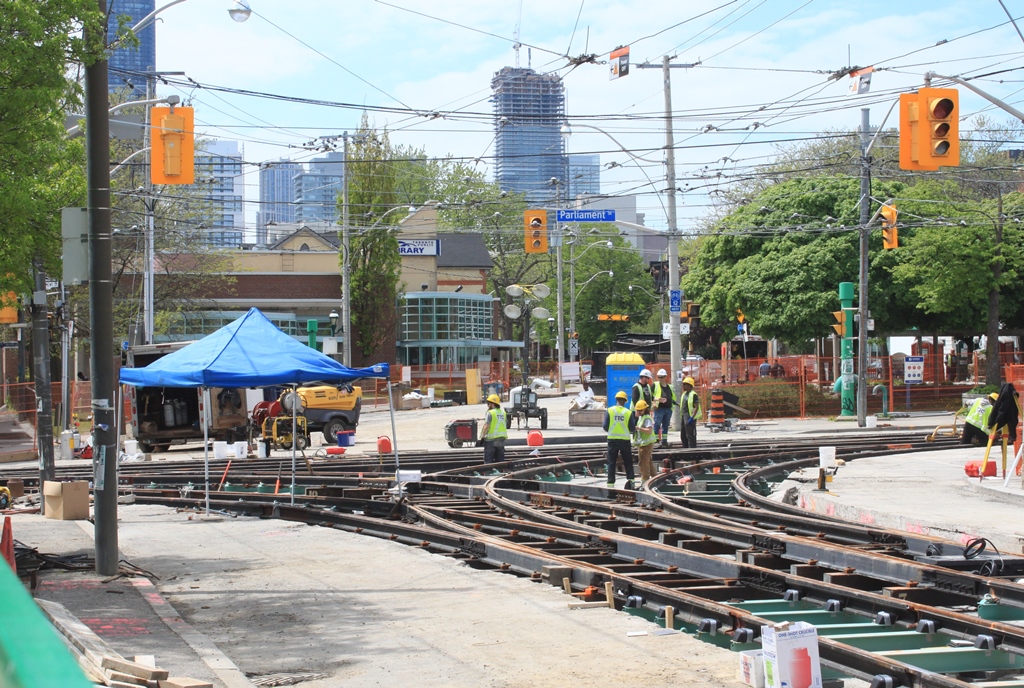 Published May 20, 2018 at 1024 × 688 in Track Replacement at Gerrard & Parliament Streets (Updated May 20, 2018) ← Previous Next → Looking NW at Gerrard & Parliament