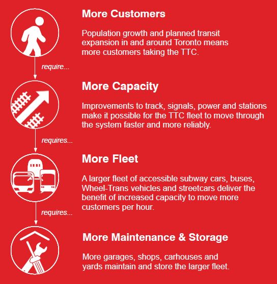 For all my love for rail transit, the case for much better bus service cannot be shouted too loudly. Buses carry over half of all transit trips in Toronto, and the subway would starve for riders without them. The TTC’s goals for better service are modest, and that is being kind. Showing a major change requires both a larger fleet and more garage space neither of which we will see in the near future. Only limited increases are planned over the coming decade. The TTC is content to advertise “express” services that, for the most part, already existed and now have only a new route number, not more buses. This is a sham, and both the TTC and Council should be embarrassed by the repeated claims that the express bus network is an “accomplishment”.
