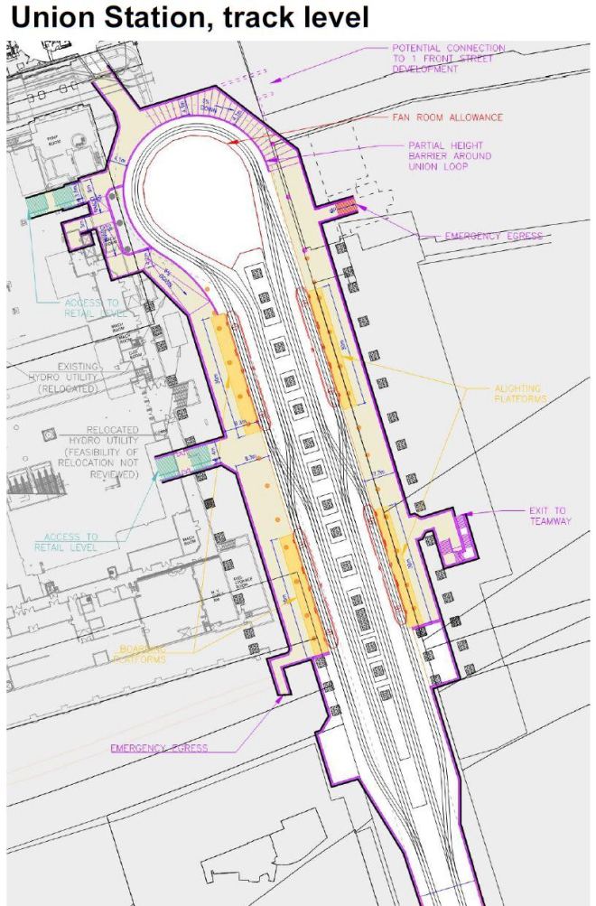 Those exits to the Union Station retail level and the York Teamway make me wonder if this new loop would become a shortcut from the subway platform to the inside of Union Station. If it is shorter or more convenient, people will use it, and you will wind up with a pile of pedestrian traffic in this loop who have no intentions of using the streetcars, but are there only to pass through, which may cause circulation problems.