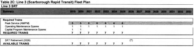 The budget assumes that the RT will continue to operate until 2026 when the Line 2 Extension opens to STC. There will be an increase in service in 2021 when the program to rebuild the fleet completes and the one capital spare train (out of a fleet of 7) is released.
