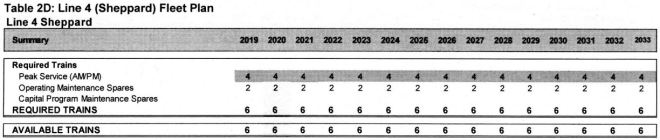 In 2026 and 2028 respectively, a further 6 and 3 trains would be added, but this would require buying more trains, including additional vehicles to restore the spare ratio. The next set of new trains for Line 1 is planned for 2029-2032 for capacity improvements and for the Richmond Hill extension.