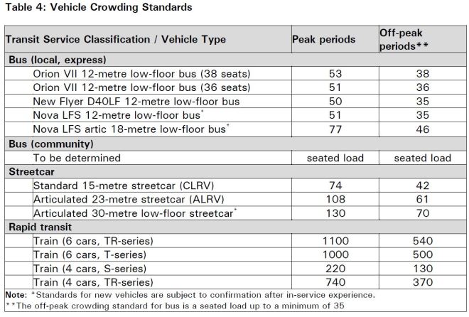 The TTC Service Standards, adopted in May 2017, set out the target loads for each type of vehicle and period of operation.