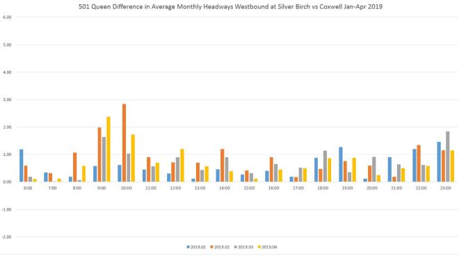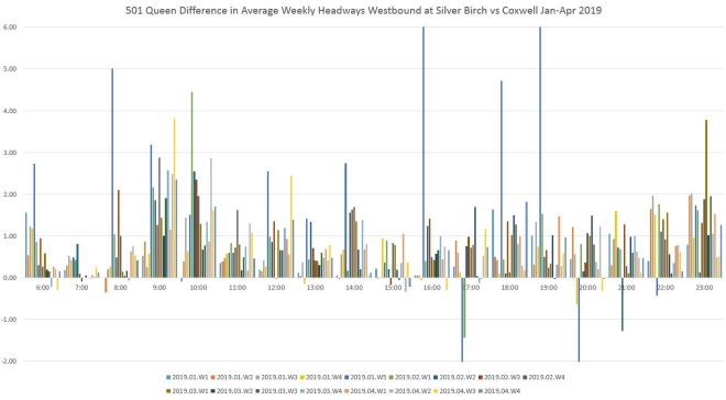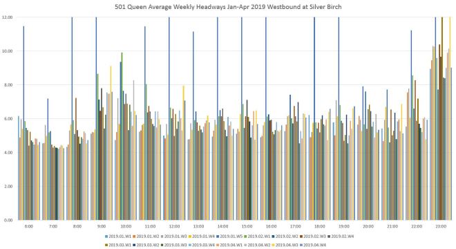 2 thoughts on “Analysis of 501 Queen: January-April 2019 (Part I – Headways at Neville Loop)