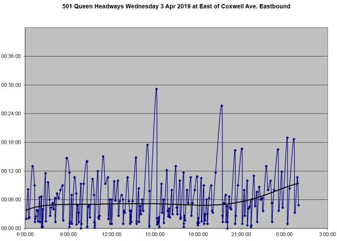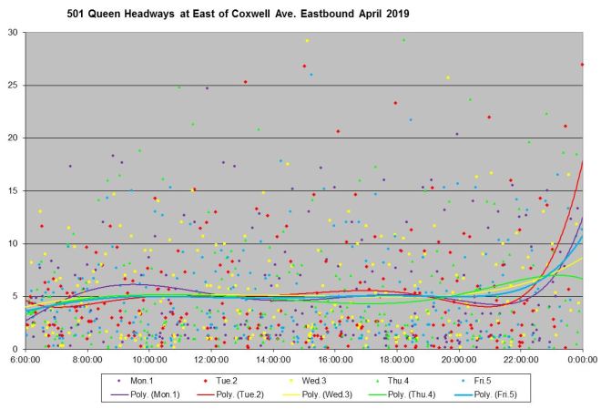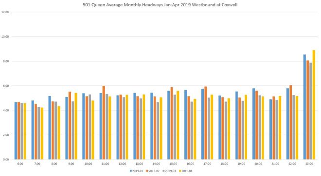 Analysis of 501 Queen: January-April 2019 (Part I – Headways at Neville Loop)