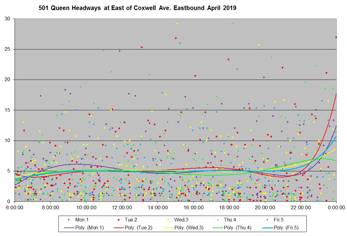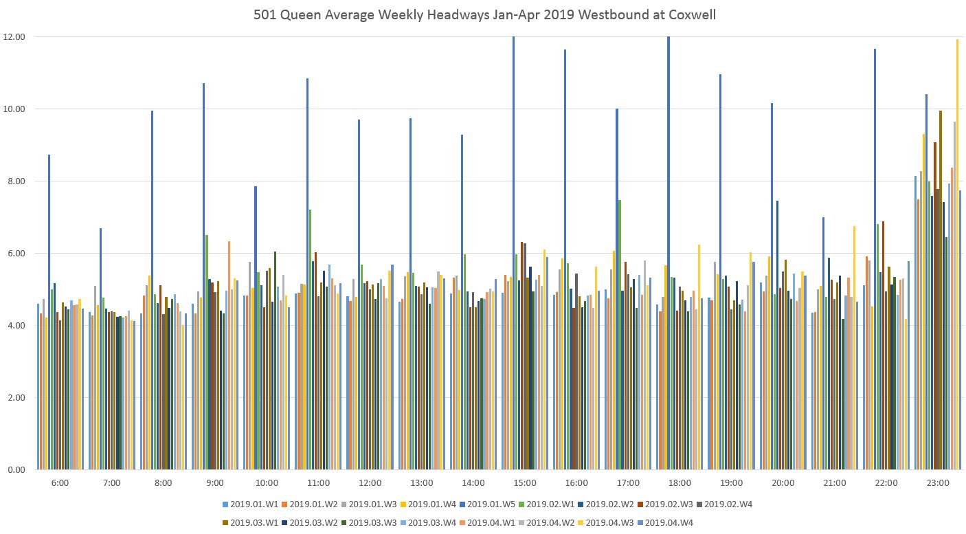 Analysis of 501 Queen: January-April 2019 (Part I – Headways at Neville Loop)