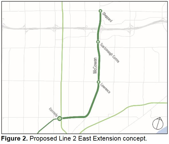• Extension of the Sheppard subway east to McCowan to meet the northern end of Line 2