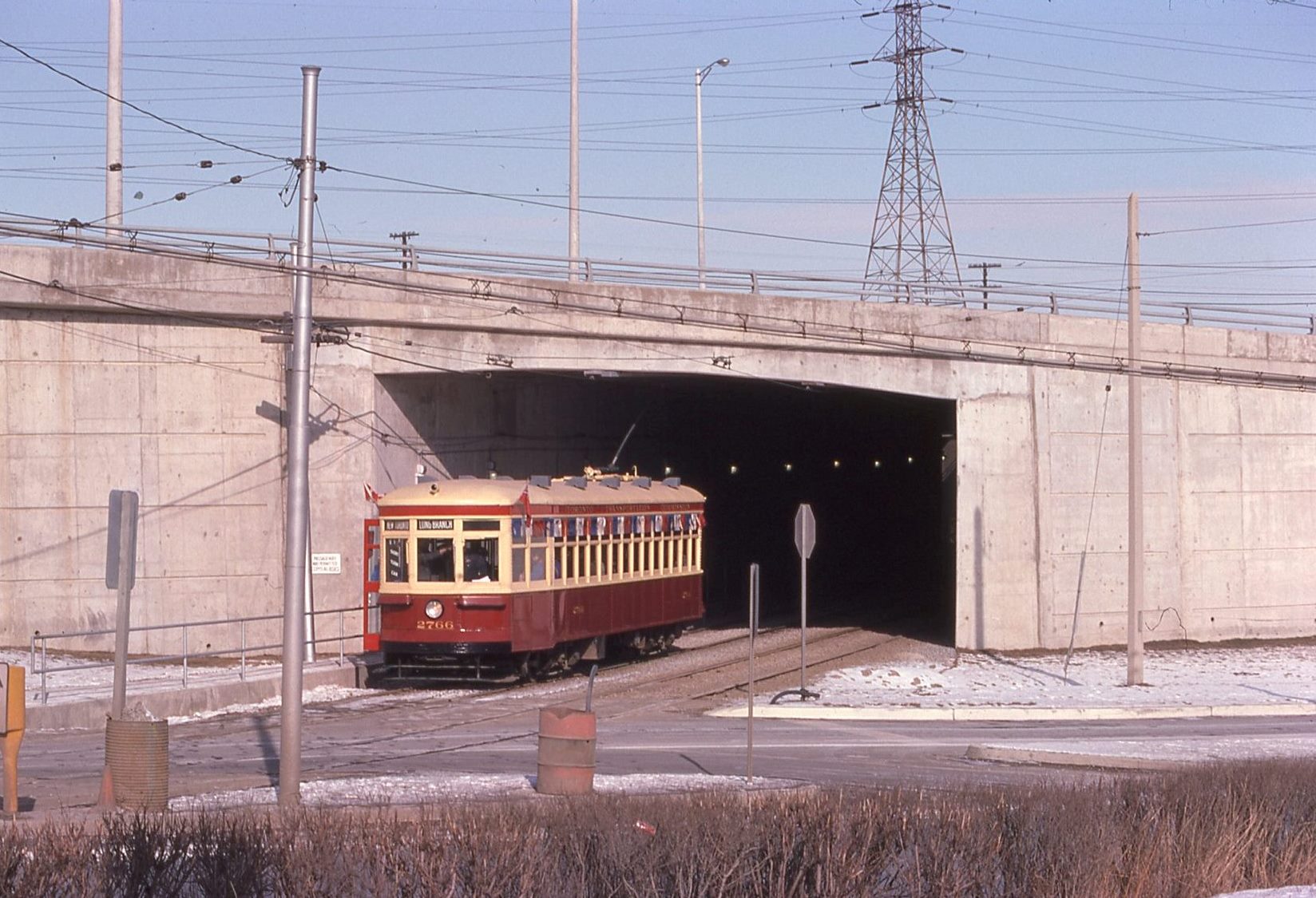 Published June 30, 2019 at 1648 × 1125 in Humber Loop QEW Realignment 1973-74 ← Previous Next → Peter Witt 2766 outbound to Lake Shore at new exit from Humber Loop Feb. 9, 1975