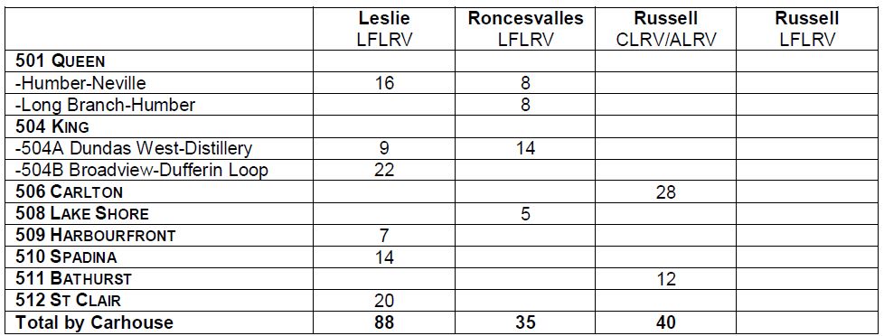 The routes and vehicles will be allocated to carhouses as shown below. Note that these are the scheduled service numbers, not the total fleet including spares.