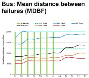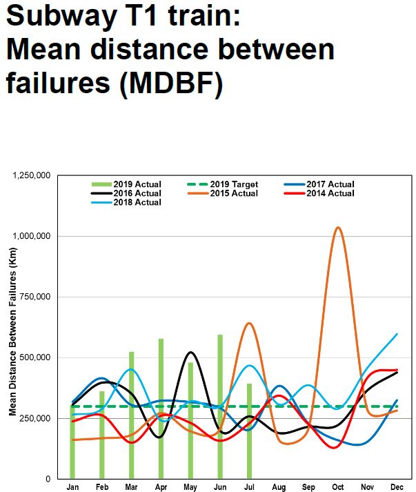 However, over the same period the unpublished reliability figures didn’t improve. The “legacy” numbers showed an MDBF of just 16,400 km in August, which while much better than the early months of the year, was virtually unchanged from the mark set in May.