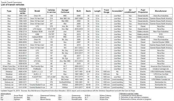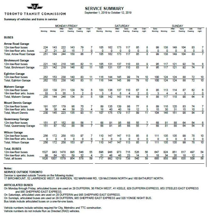- With many new buses coming on stream, the TTC can keep old buses in service and maintain a high ratio of spares to service requirements. The situation is very different for the streetcar fleet where with the retirement of old cars, the fleet is too small to provide service on all routes with an adequate number of spares for maintenance.
