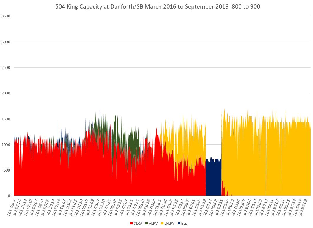 The capacity operated south on Broadview from Danforth, like its west end counterpart at Dundas West, has been quite consistent for the past year.