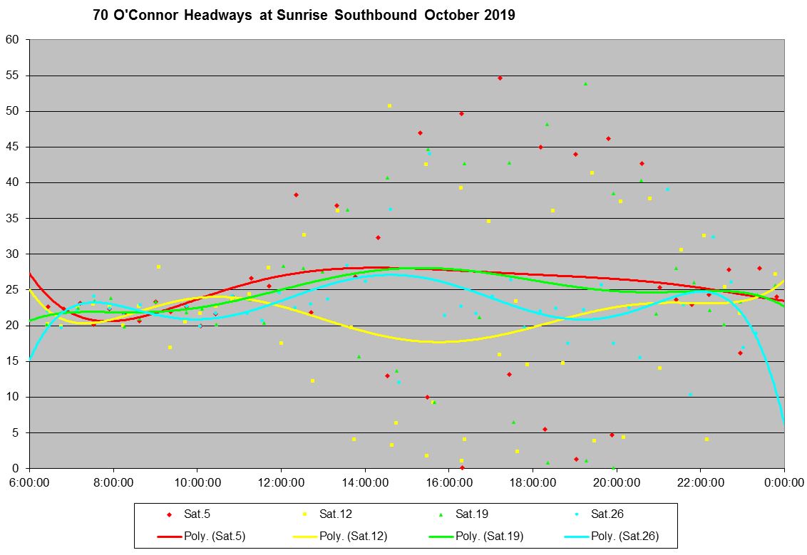 70_201910_Sat_SB_Sunrise_MonthHeadways Published November 20, 2019 at 1132 × 779 in Analysis of Route 70 O’Connor for October 2019 ← Previous Next →
