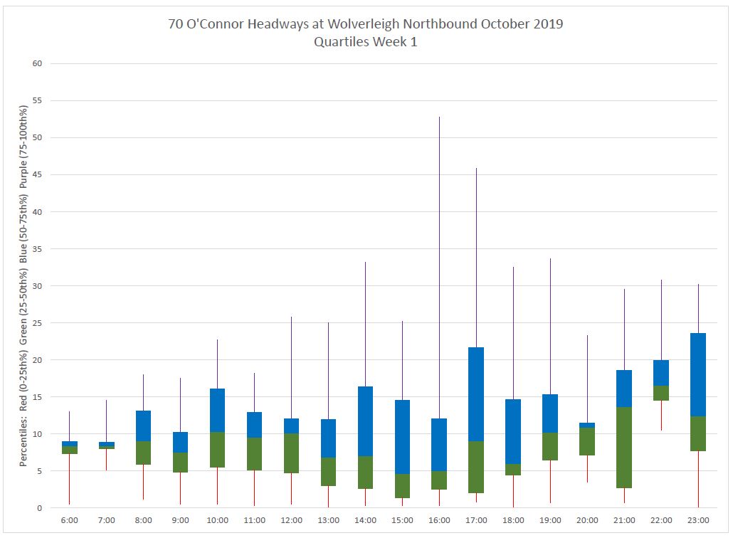 70_201910_Wk1_NB_Wolverleigh_MonthHeadwayQuartiles Published November 19, 2019 at 1030 × 756 in Analysis of Route 70 O’Connor for October 2019 ← Previous Next →