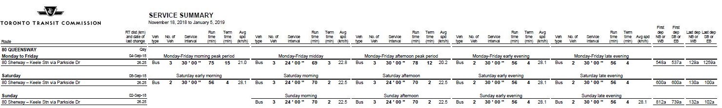 The entire change on 80 Queensway is that weekday midday service declined from every 24 to every 30 minutes, while evening service improved from 30 to 24.