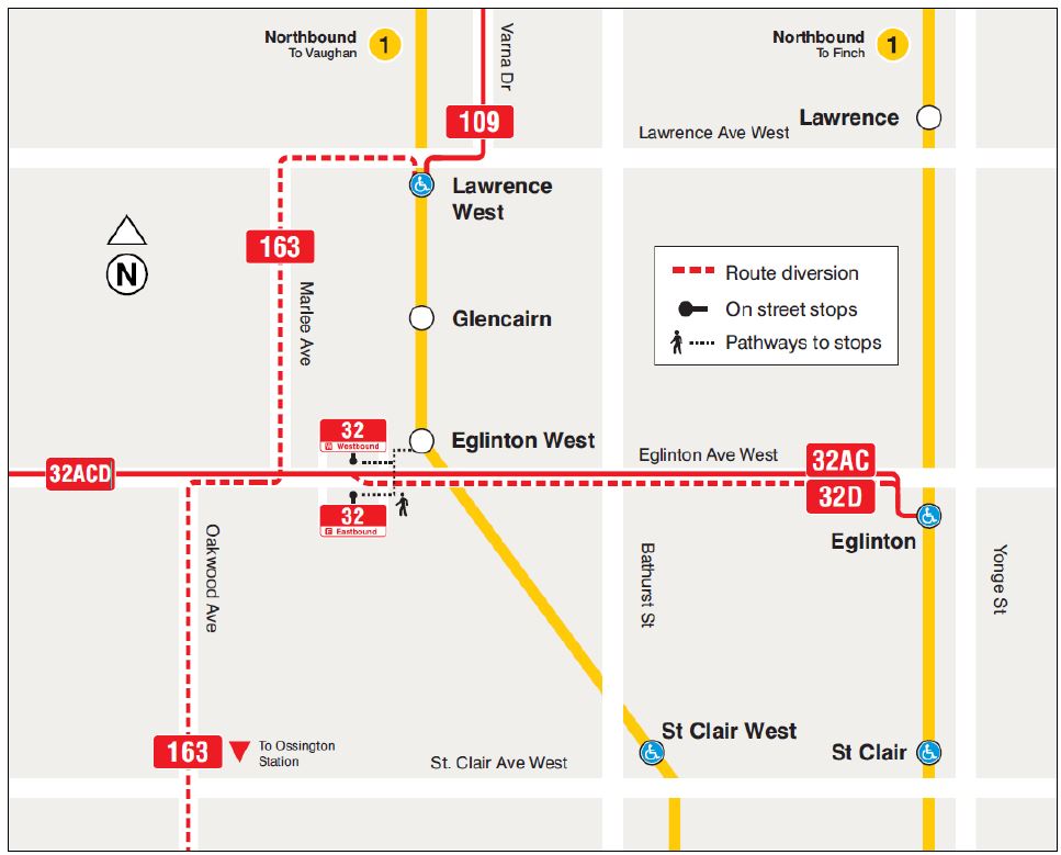 At various times over recent years, there have been buses running on portions of Carlton, Dundas, Queen, King, Kingston Road and Bathurst. Some of these cases have been complete replacements while others are on portions of lines affected by construction.