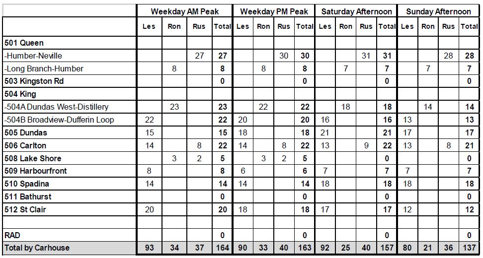 This creates an odd sort of response to requests for more service: we have no place to store the buses. That, of course, is a chicken-and-egg situation where the TTC (and the City) can avoid the cost of providing more service by claiming that they couldn’t run more buses if they wanted to. Unfortunately, this does not accelerate the provision of more garage space, and the service vs storage deadlock remains.