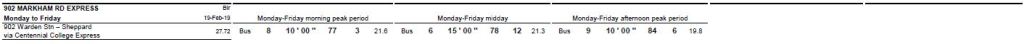 At Ellesmere, only the service running to the northern terminus remains. As noted above, it is better in the midday than the peaks because there used to be a 986 express service to Sheppard supplementing the peak service.