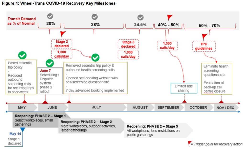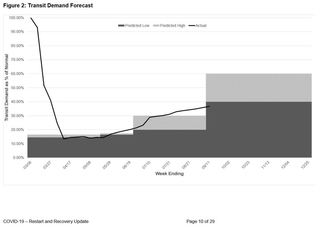 Although Wheel-Trans is a much smaller operation than the “conventional” system, ridership has been returning to it roughly in line with the rest of the surface system. Demand is expected to be close to 50% of pre-covid levels by the end of 2020.