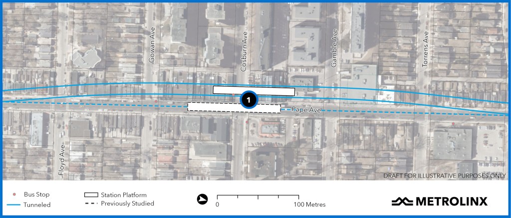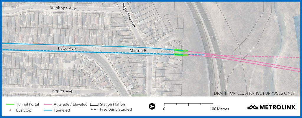 The reason for this change, according to Metrolinx, is to simplify the transition to the tunnel under Pape Avenue.