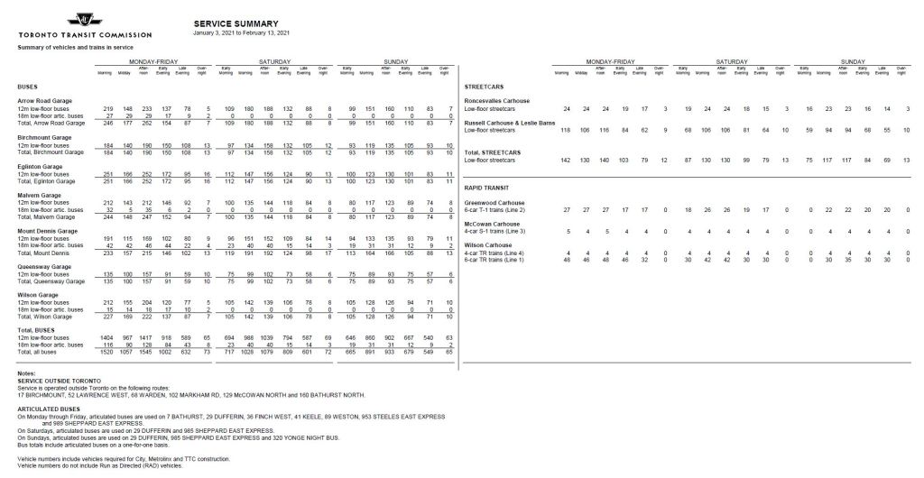 Source: TTC Scheduled Service Summary, January 3, 2021