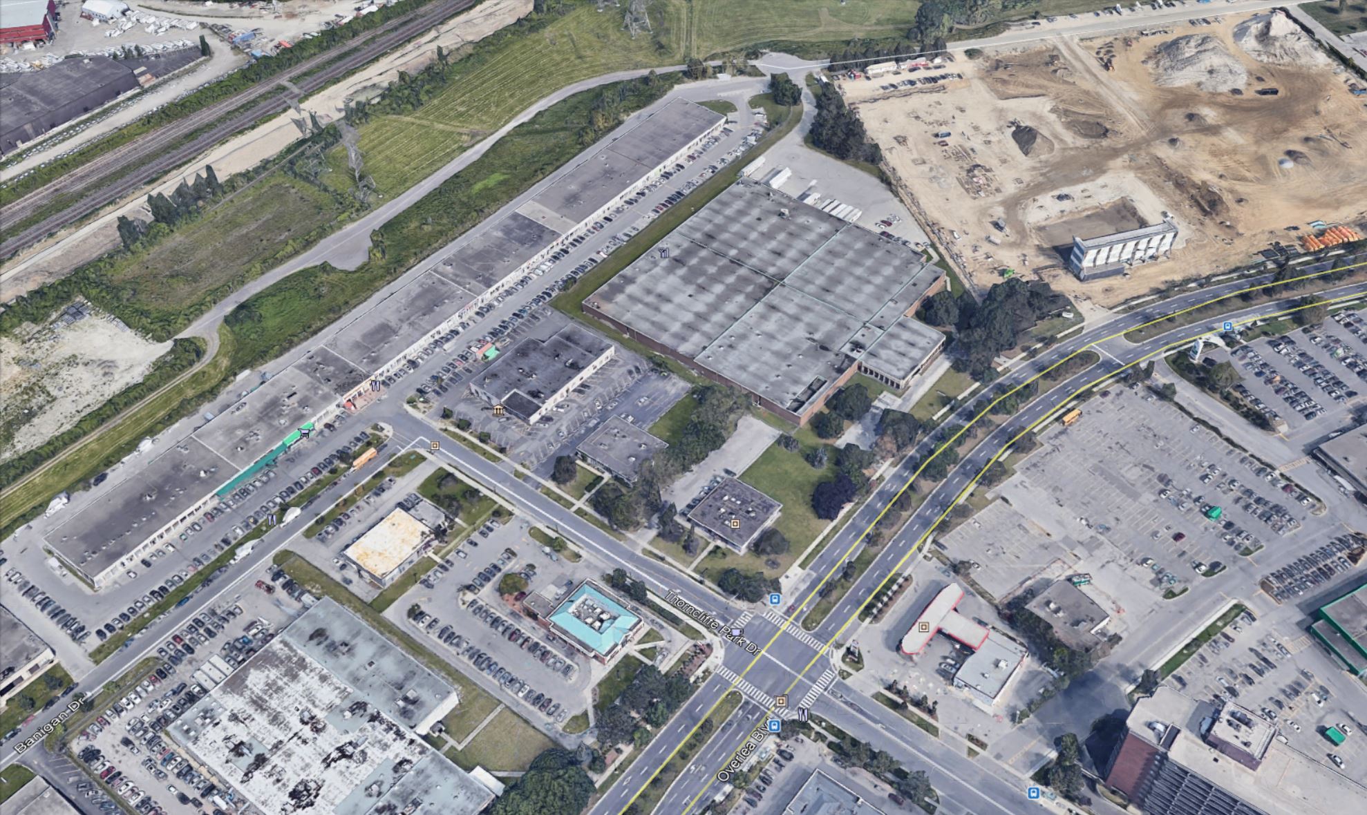 Google Street View east from Thorncliffe Park Drive at the future storage yard.