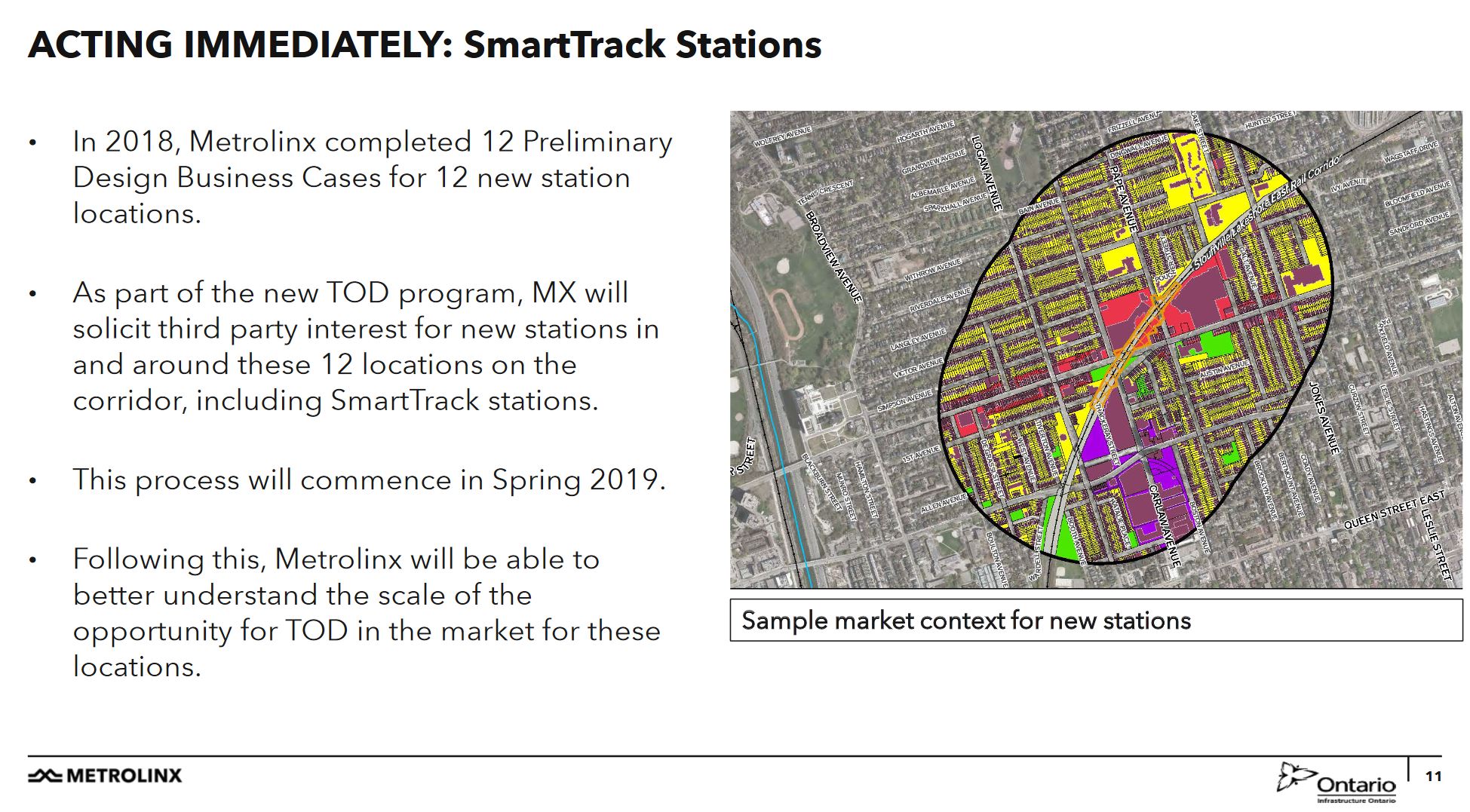 The station at Gerrard potentially will see considerable development because it has existing commercial property and parking. Note that its zone of influence extends almost to Queen Street. Here was how this was presented to the Metrolinx Board in 2019.