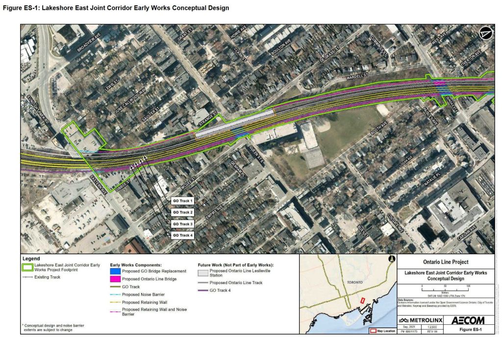 An important note about the “Early Works” reports: With the exception of an Operational Noise and Vibration Study that looks at post-opening conditions for expanded GO and Ontario Line service, the Early Works reports consider only the effect of those specific works, mainly the construction activity, not of the permanent change to the neighbourhood or the effect of future GO or OL construction. That information will not show up until the final Environmental Assessment by which time it will be almost impossible to alter the plans.