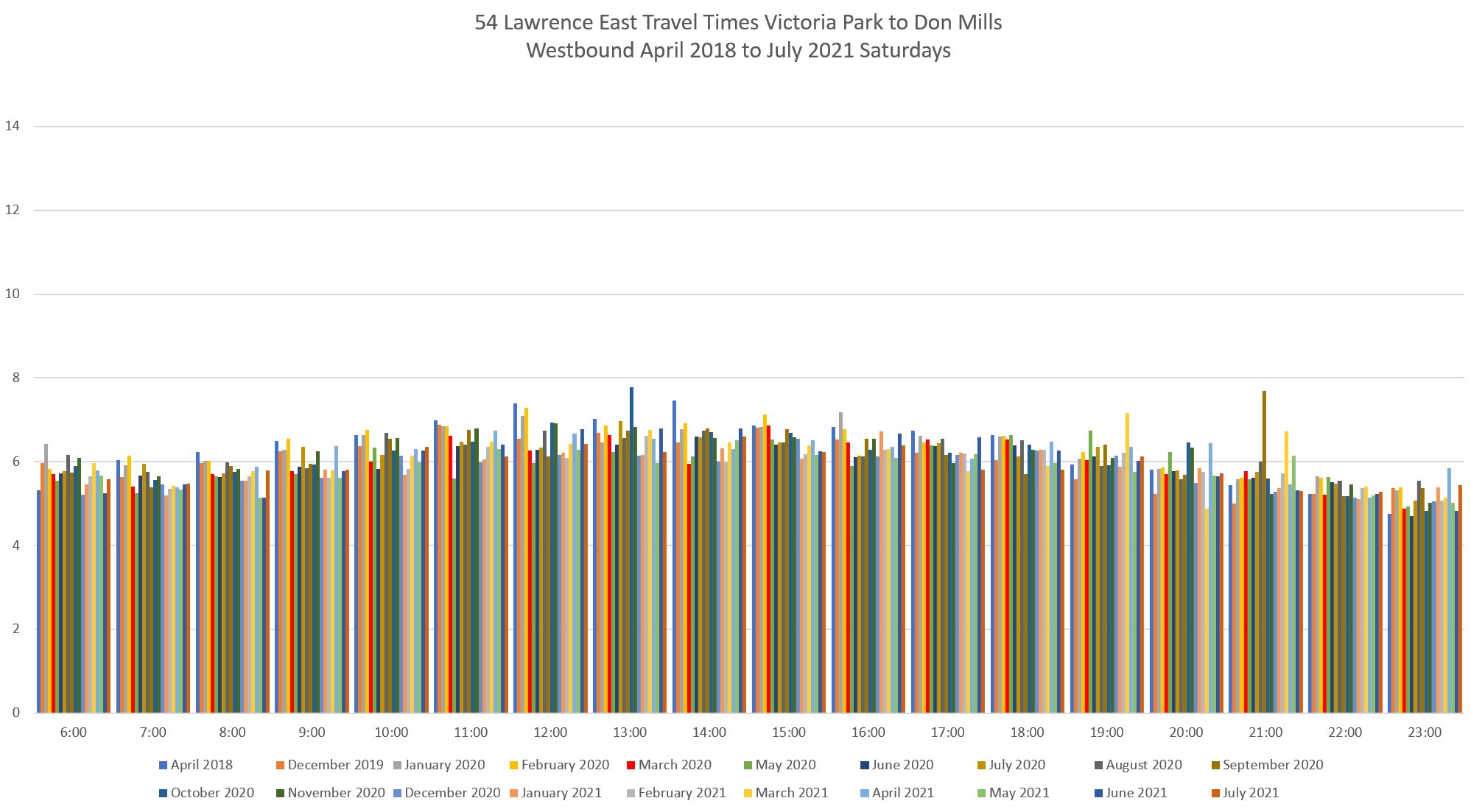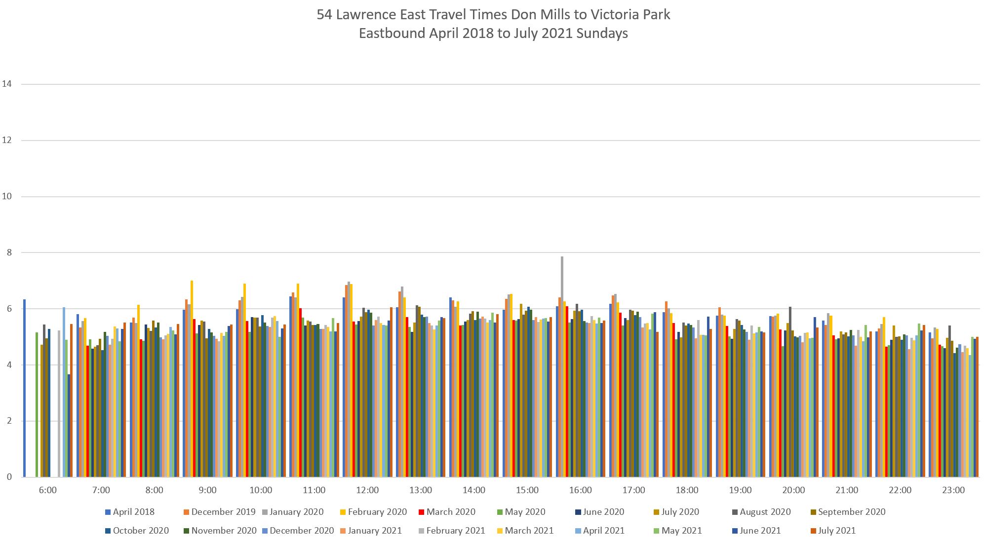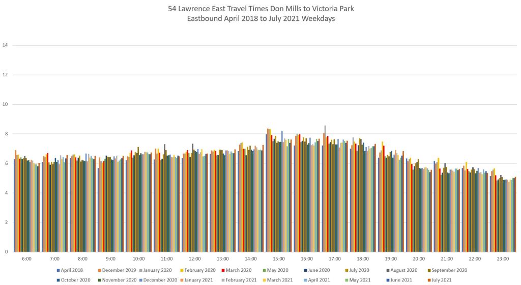 Evolution of Travel Times Between Victoria Park and Don Mills