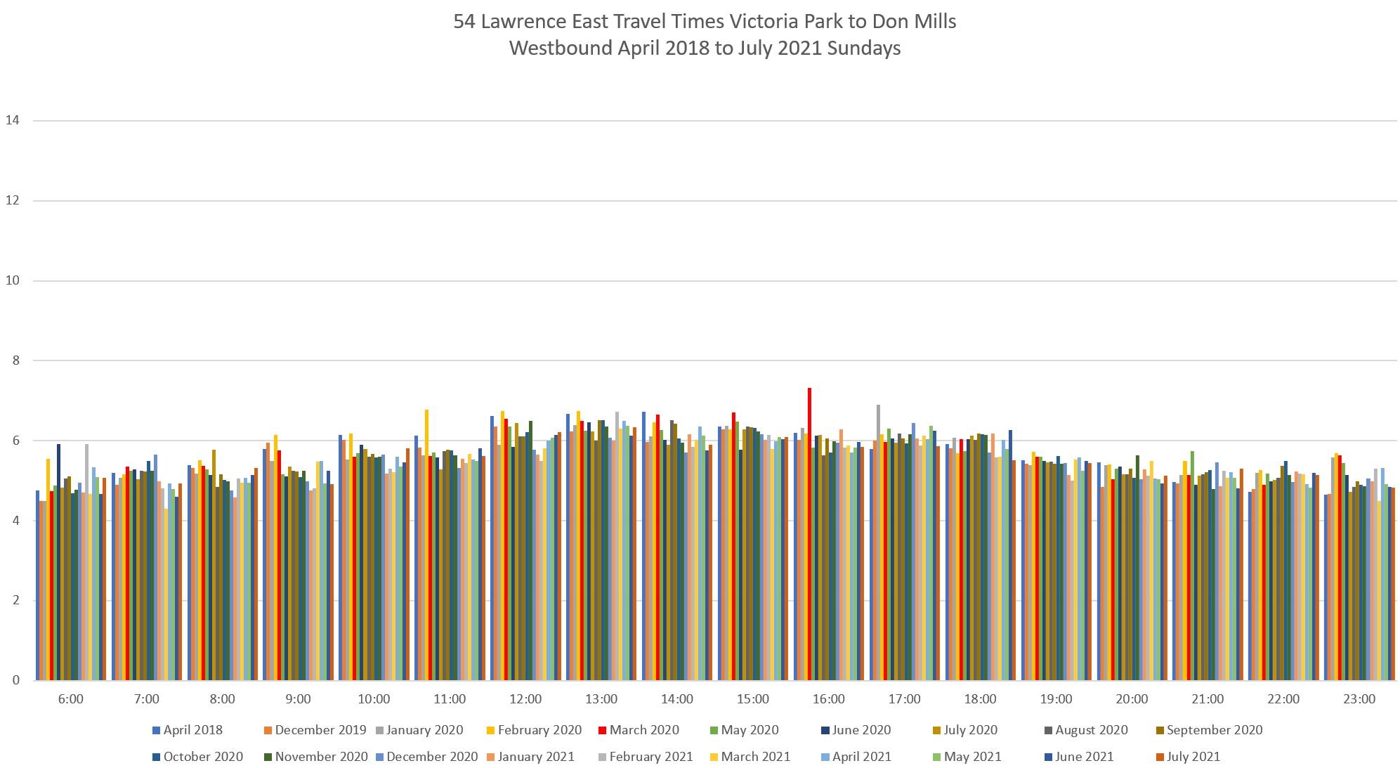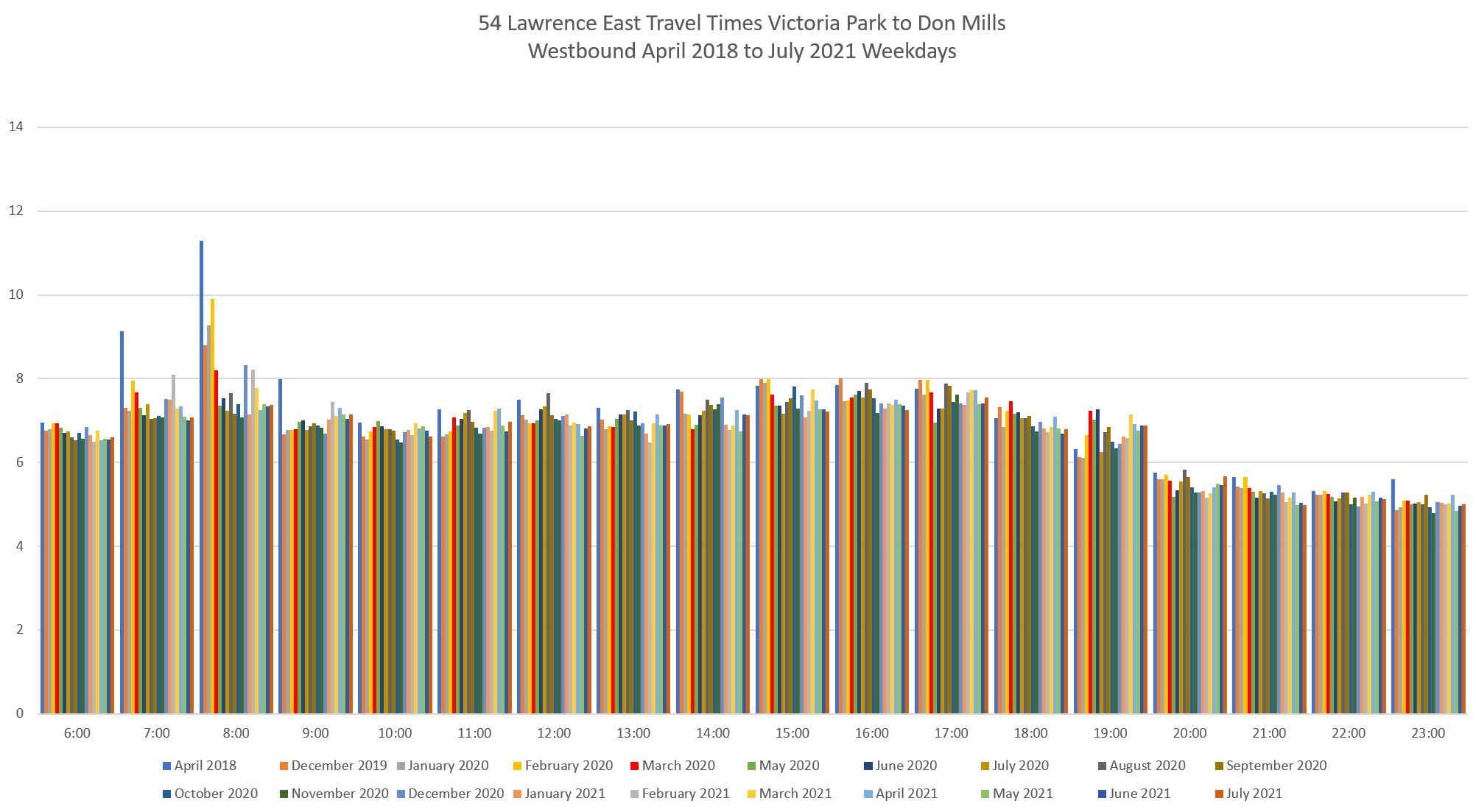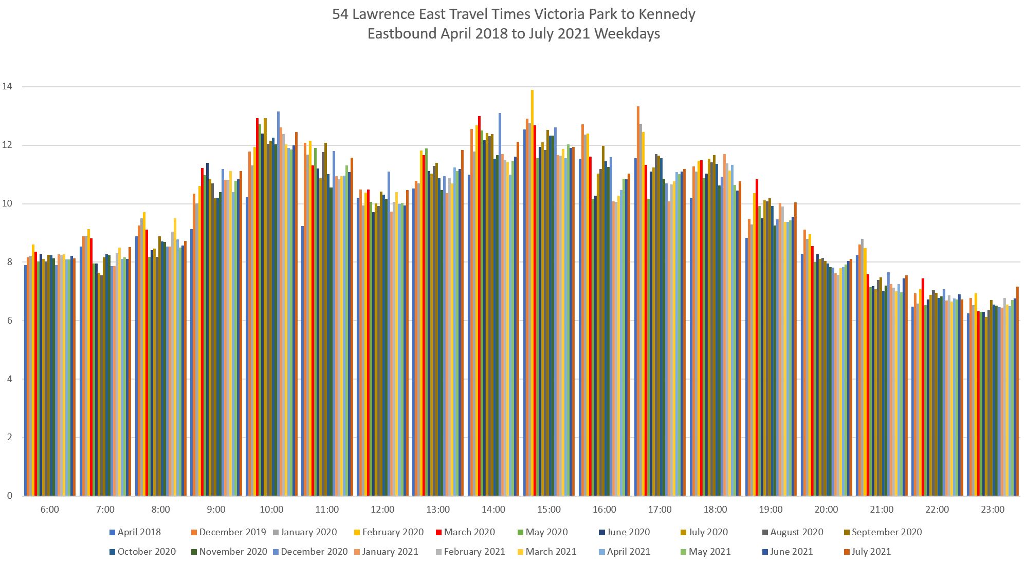 Evolution of Travel Times Between Victoria Park and Don Mills