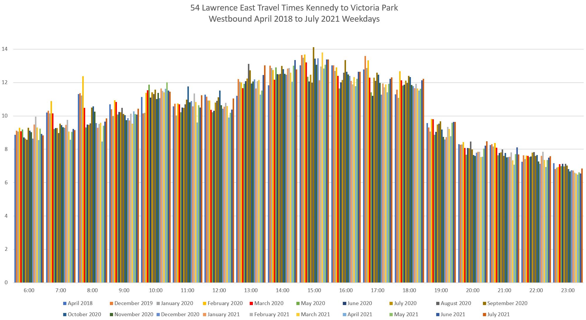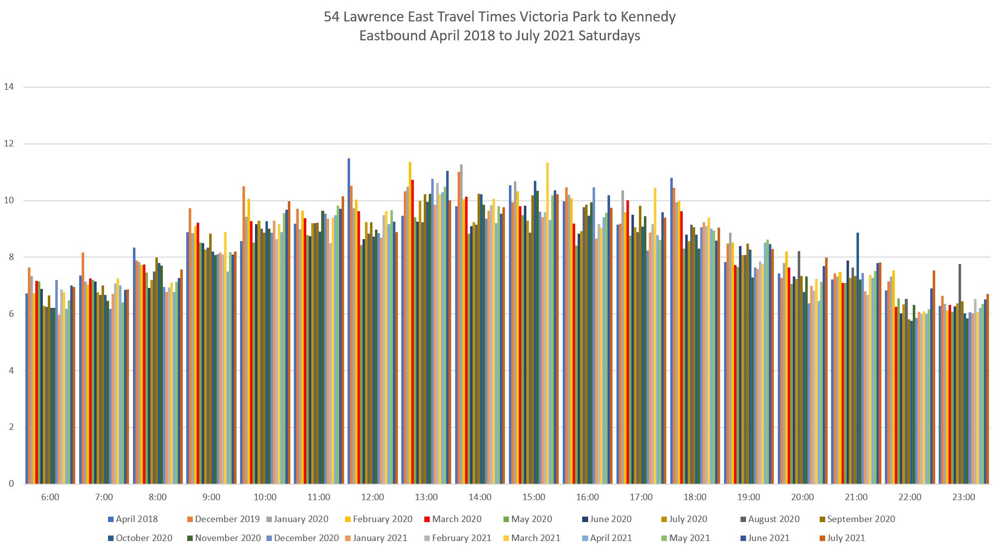 Evolution of Travel Times Between Kennedy and Victoria Park