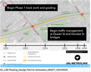 A further problem is that an earlier EA dealt with the GO expansion program before the Ontario Line was added to the corridor. This is an “approved plan” although it addresses a different configuration from what will now be built. Metrolinx is trading on this “approval” to claim that aspects of their project are already past the point of change, even though the presence of the Ontario Line and the planned regrading of the GO corridor are substantial changes.