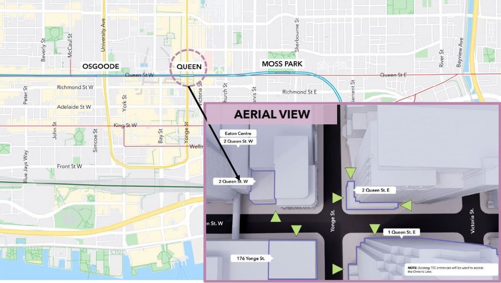 Steve: Queen, yes; Osgoode, no. The one at Yonge was not a full sized station. It will be used as part of the passageway to the vertical elements leading down to the Ontario Line.