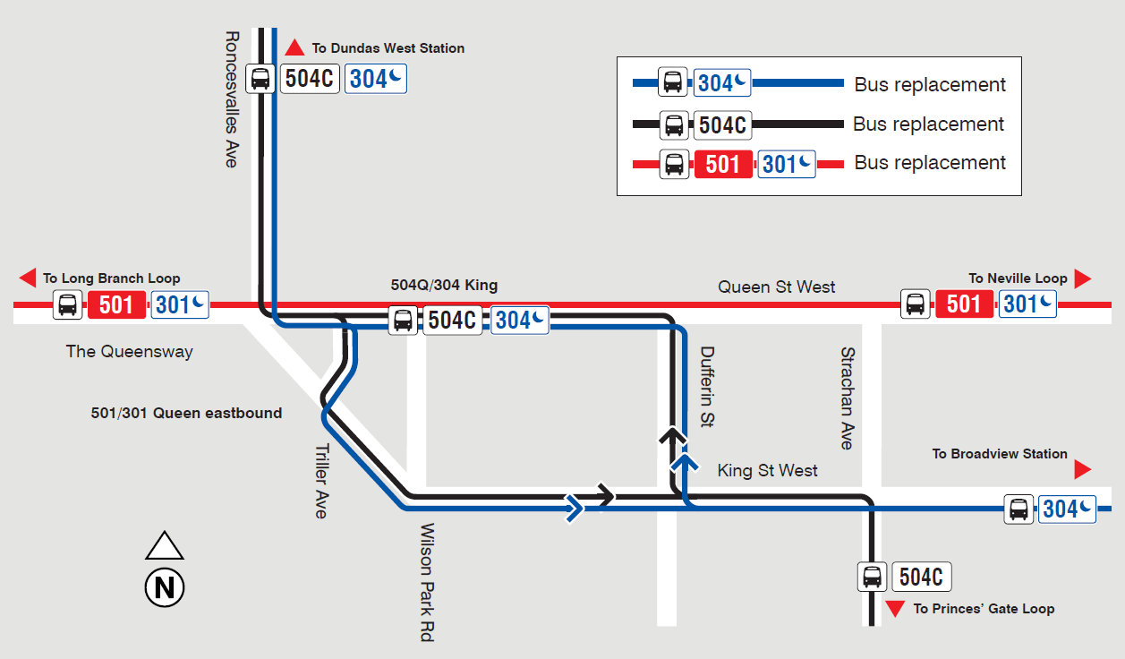 - 501 Queen, 504 King, 505 Dundas and 506 Carlton (together with related night services) are affected by various projects. Details are in a separate article.